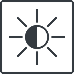 Thin, line, up, square, star, light, brightness, luminosity, intensity, brilliance, lighter, darker, dark, mode, Illumination, sun, shine, flash, ray, brightness-thin, brightness-thin-half, brightness-half.
